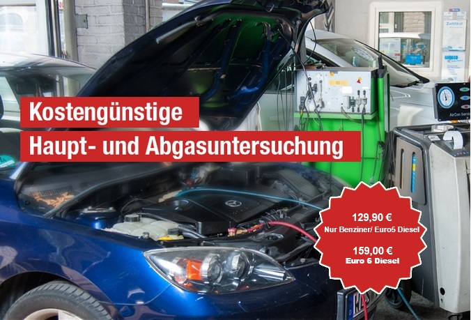 Sechs Mal pro Woche können Sie bei uns auch die Haupt- und Abgasuntersuchung vornehmen lassen. Alle Informationen und unser preisgünstiges Angebot dazu finden Sie hier. Ebenfalls zu unserem Leistungsspektrum gehören die Wartung und Reparatur von Klimaanlagen, sowie professionelle Beseitigung von Unfallschäden.